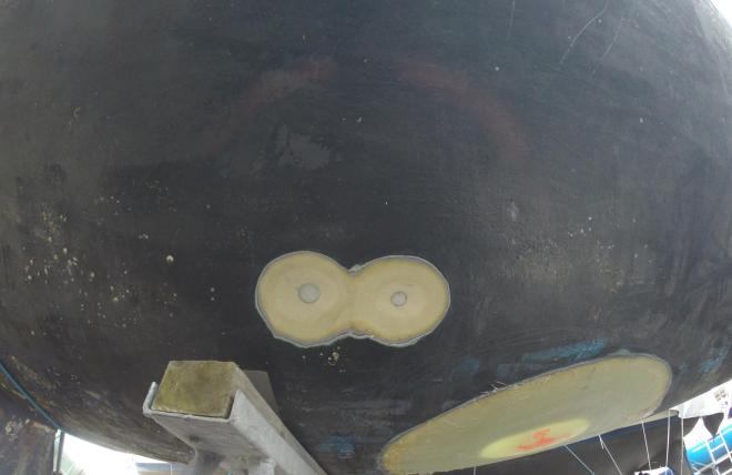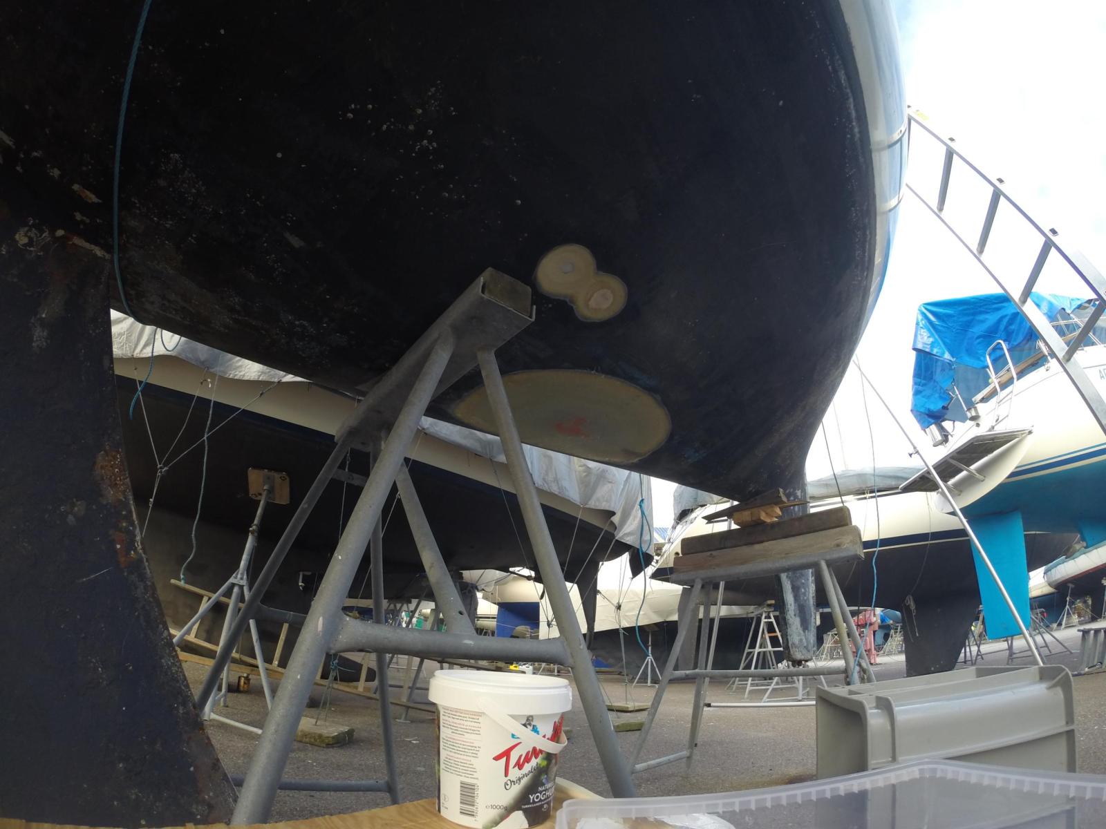 I ett av stuvfacken på styrbords sida, akter om huvudskottet fans två genomföringar för den gamla toaletten. Av någon anledning så satt dessa två i ett stuvfack i salongen istället för framme där toan har varit. Oklart varför. I dagsläget behöver vi inte några genomföringar och om eller den dagen då vi behöver det kommer vi att sätta de på räta plats – intill muggen.