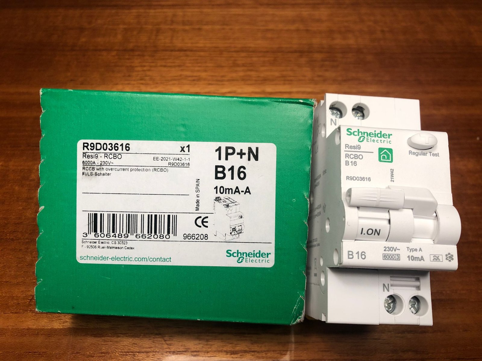 2 st Personskyddsbrytare / Personskyddsautomat Schnedier Resi9 CX 16A B-kruva, 10mA Oanvända i kartong